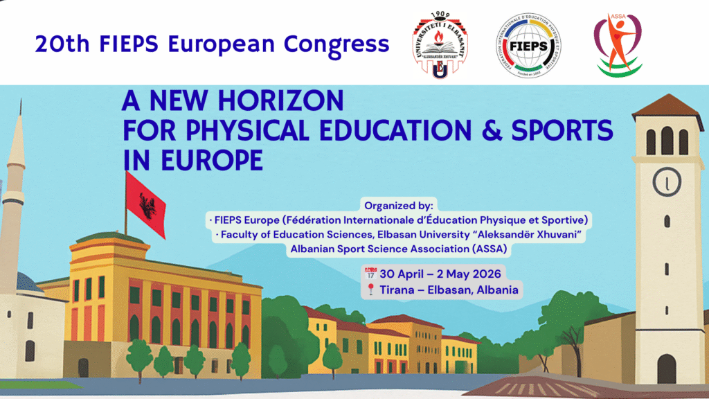 The 20th FIEPS European Congress will bring together scholars, educators, researchers, policymakers, and practitioners from across Europe and beyond to explore new horizons for Physical Education, Sport, and Health promotion. Hosted for the first time in Albania, this milestone event will serve as a dynamic platform for exchanging ideas, presenting scientific research, and strengthening collaboration among universities, schools, and sport organizations.